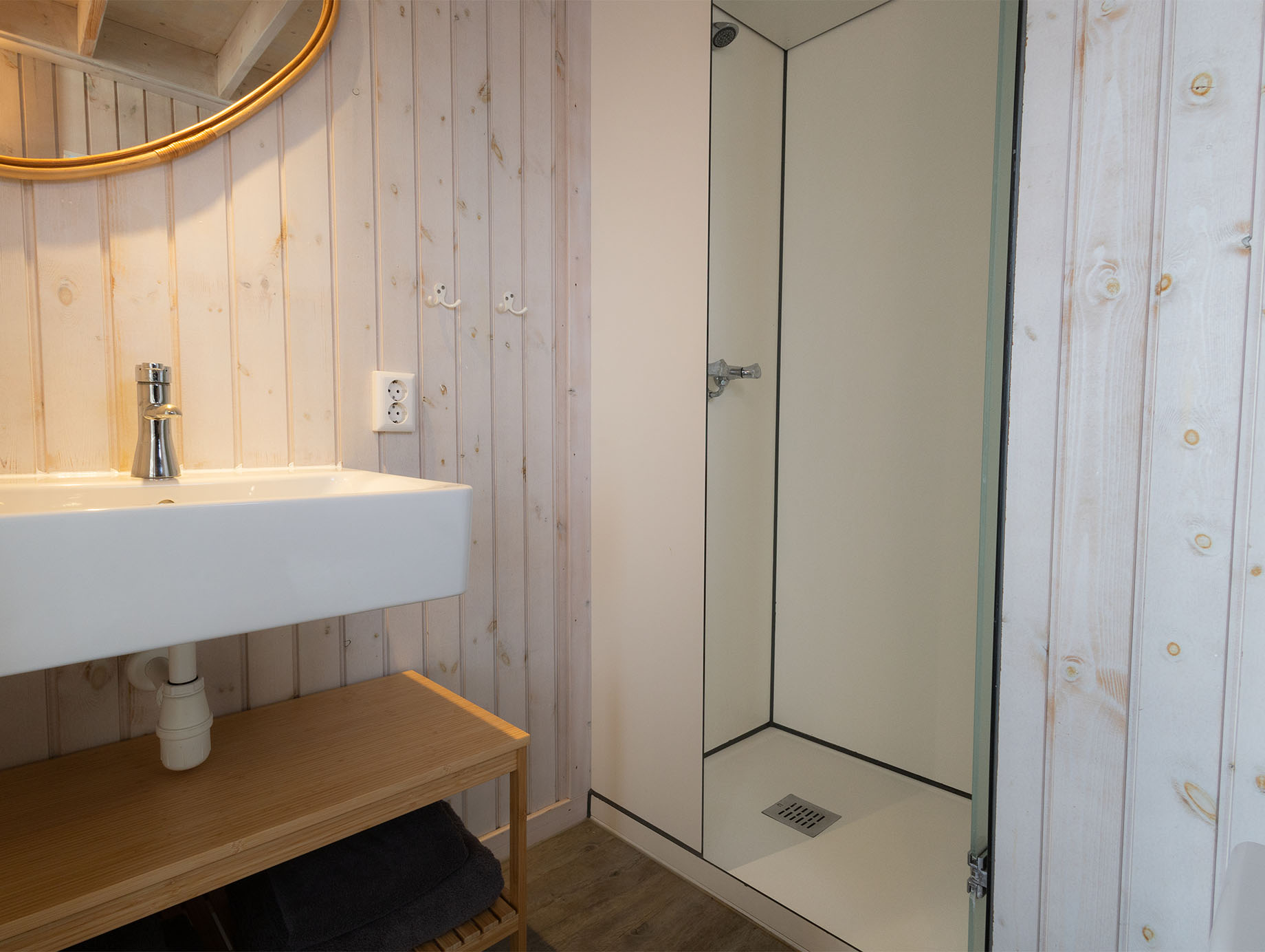 De Lodge beschikt over een compacte badkamer met douche, wastafel en toilet. Op het eigen terras wordt genoten van het uitzicht over het Grevelingenmeer.