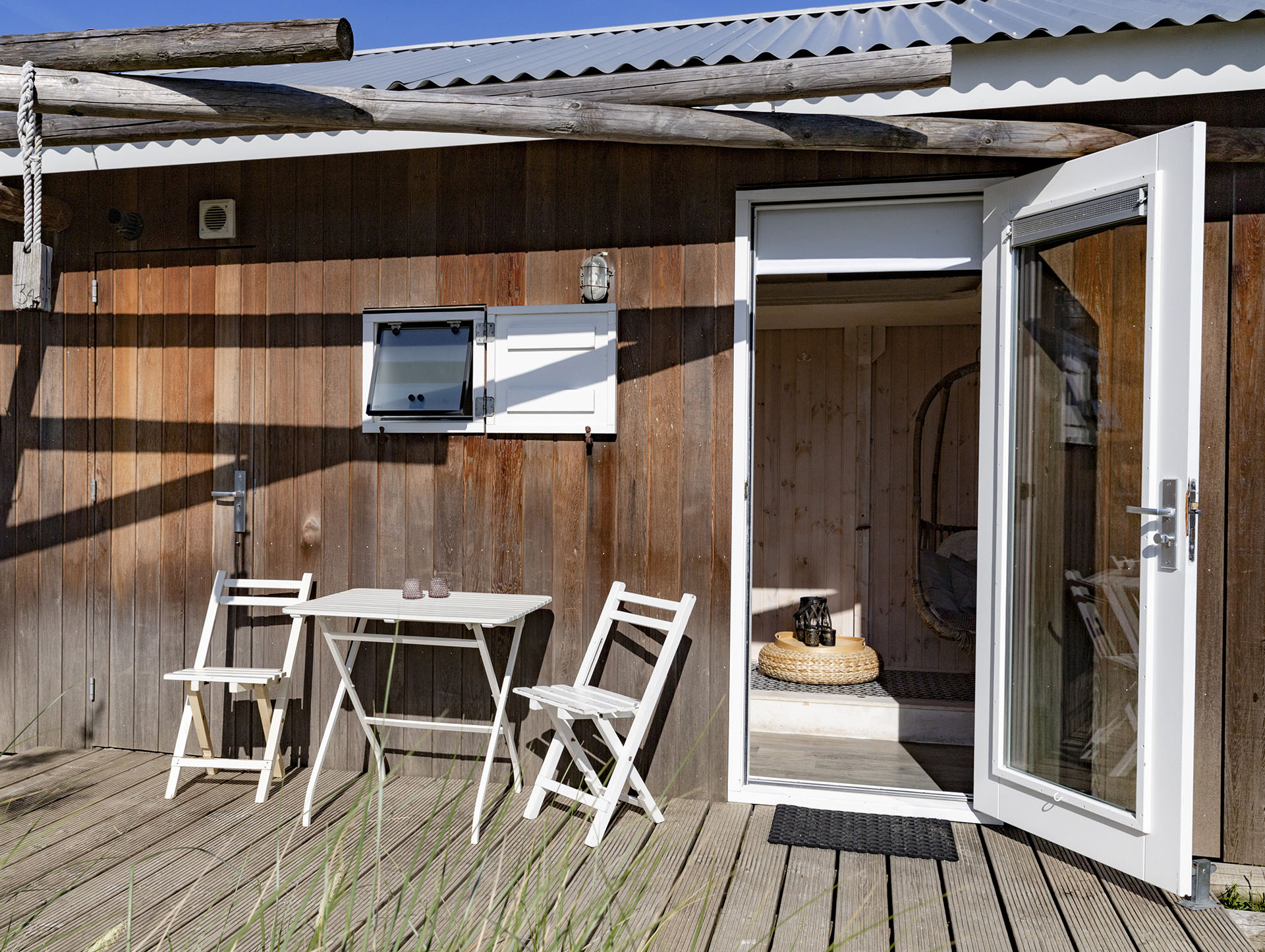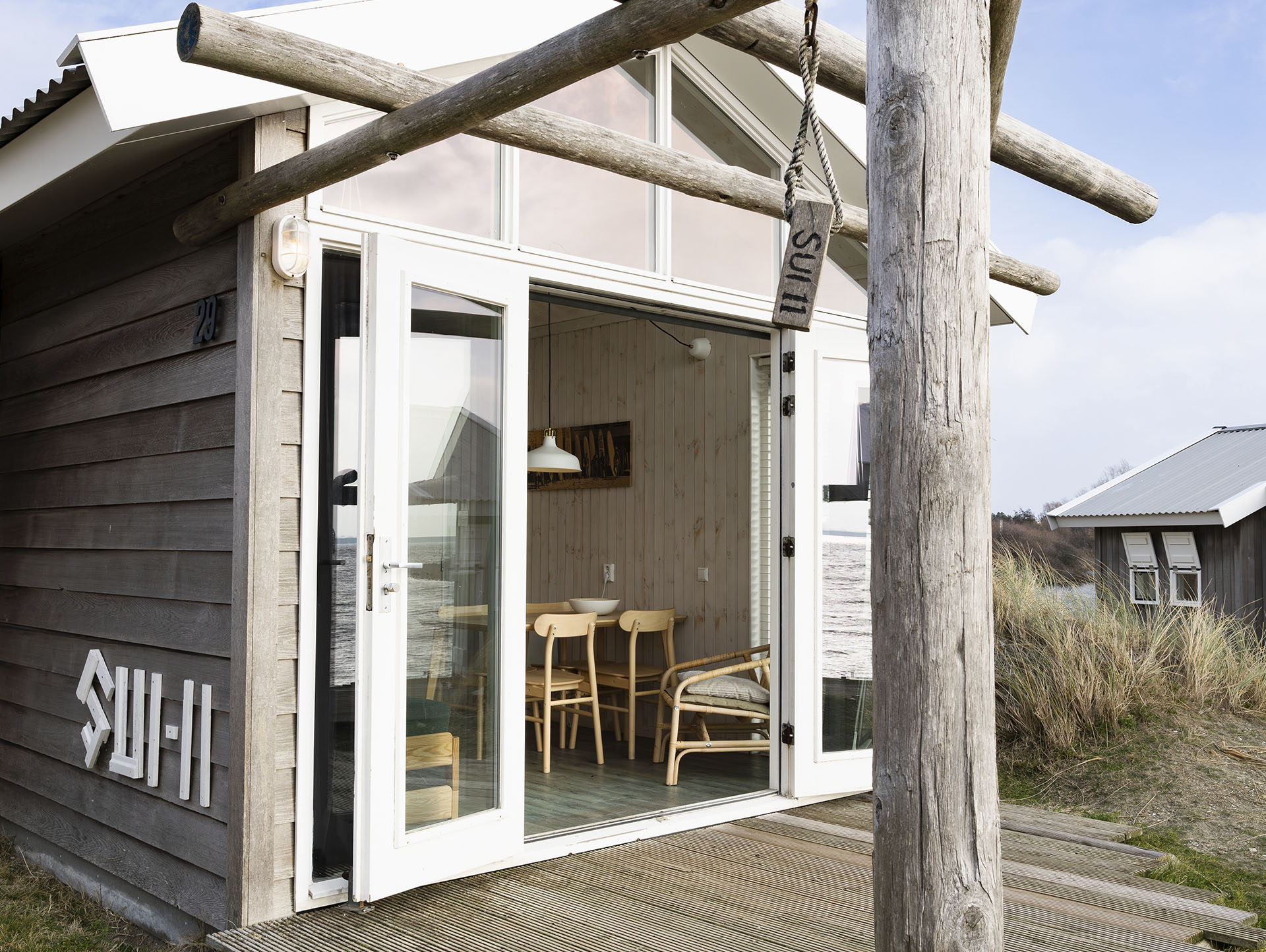 Knus en sfeervol tussen de duinen, met doorkijkjes naar het water. Perfect om op te laden met een groter gezelschap.